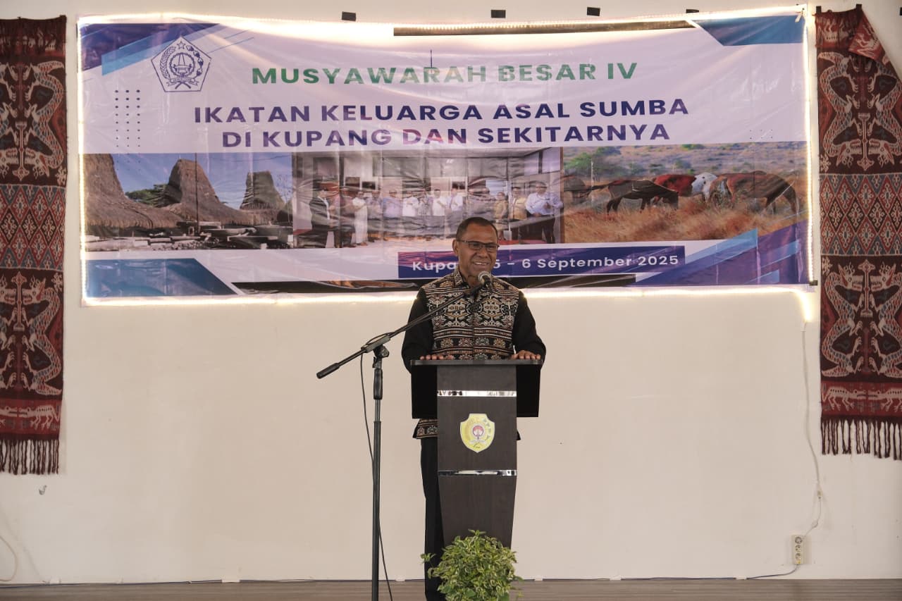 Wakil Gubernur NTT, Johni Asadoma resmi membuka Musyawarah Besar (Mubes) ke-IV Ikatan Keluarga Asal Sumba (IKAS) Kupang Tahun 2025, Jumat (5/9/2025) di Aula Rumah Jabatan Wali Kota Kupang.