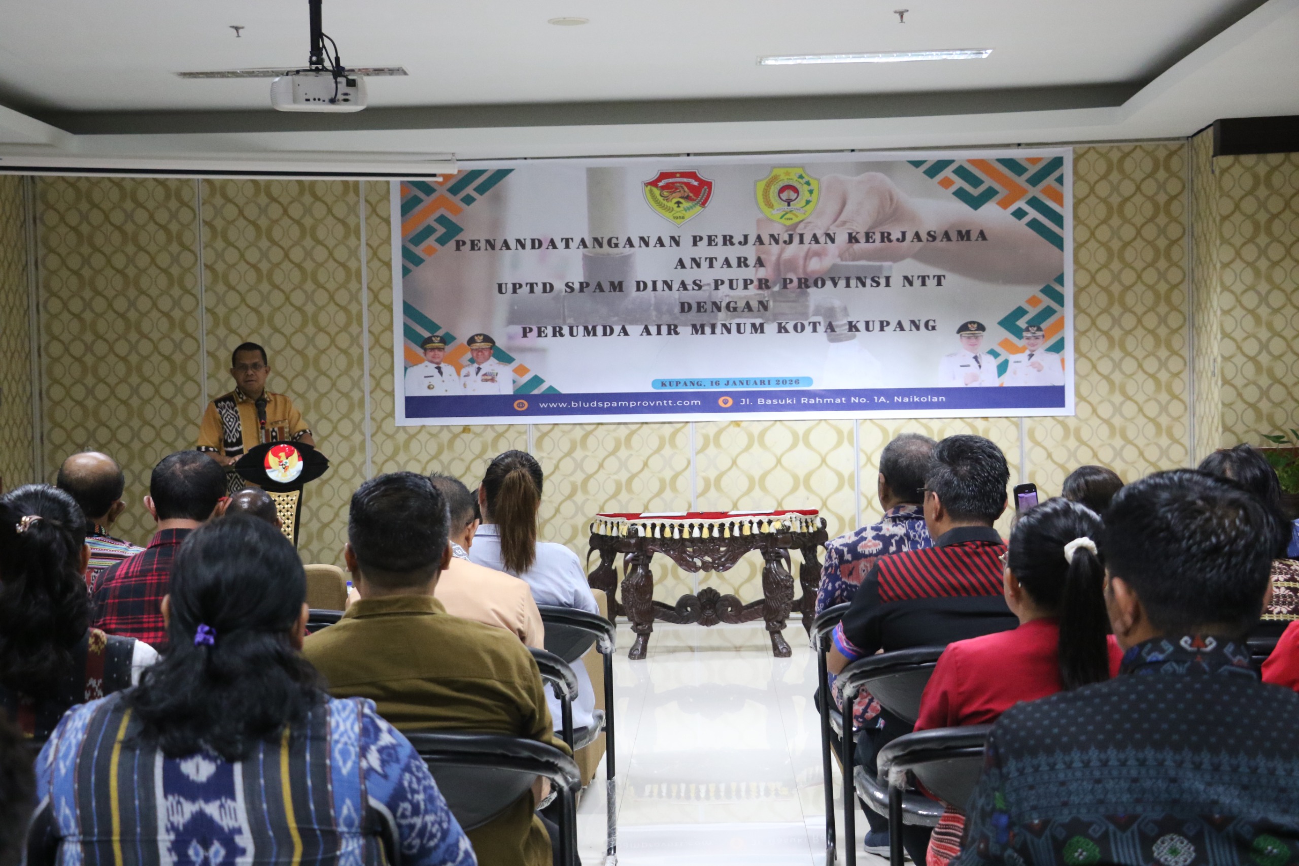 Pemerintah Provinsi Nusa Tenggara Timur (NTT) melalui UPTD Sistem Penyediaan Air Minum (SPAM) Dinas Pekerjaan Umum dan Penataan Ruang (PUPR) Provinsi NTT secara resmi menandatangani Perjanjian Kerja Sama dengan Perusahaan Umum Daerah (Perumda) Air Minum Kota Kupang, Jumat (16/1), bertempat di Ruang Rapat Asisten Sekda Provinsi NTT.