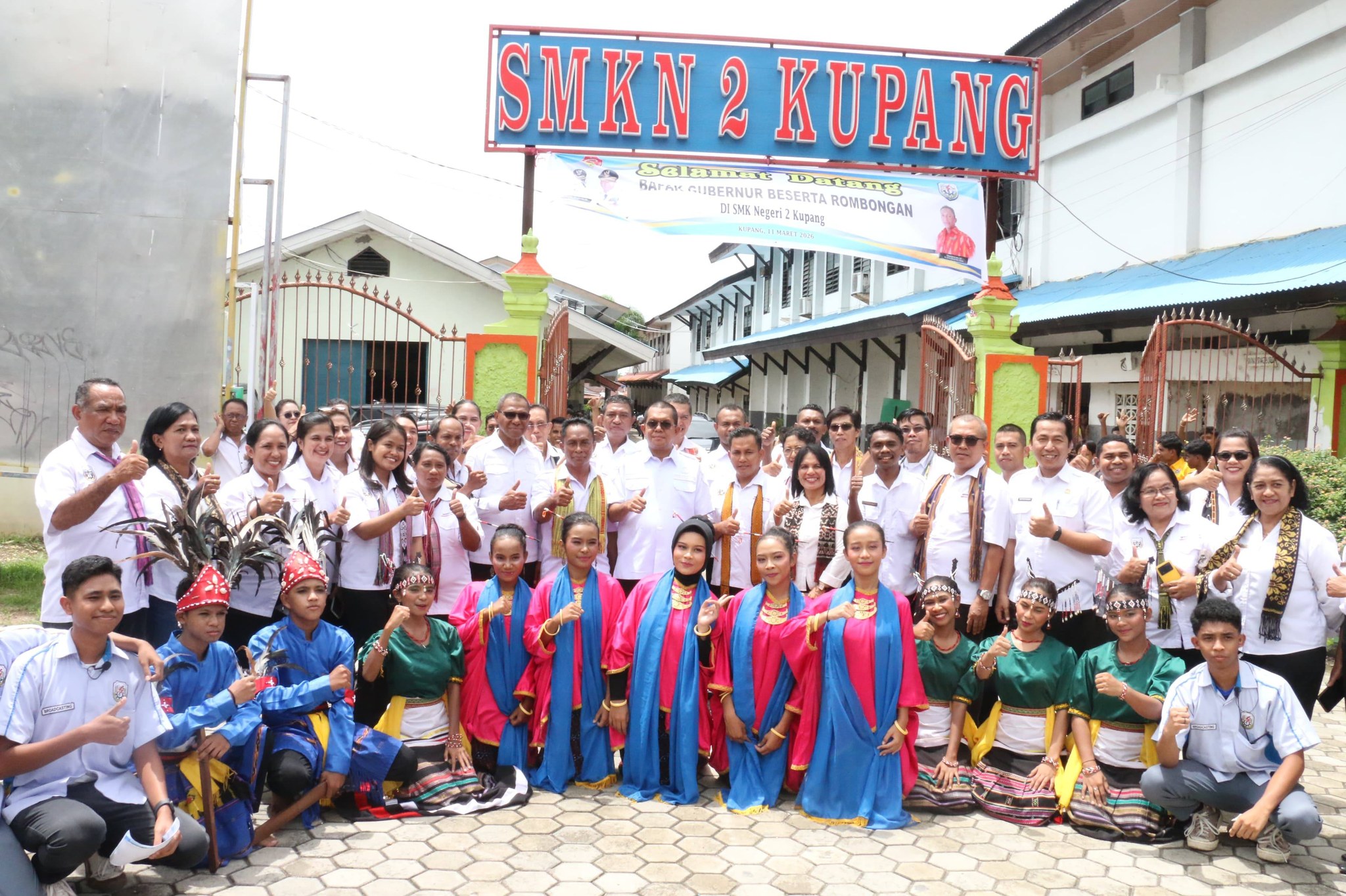 Kupang - Suasana di SMKN 2 Kupang pada Rabu (11/3/2026), tampak berbeda dari biasanya. Para siswa dan guru tampak antusias menanti kedatangan Gubernur dan Wakil Gubernur NTT yang akan melakukan kunjungan ke sekolah ini.