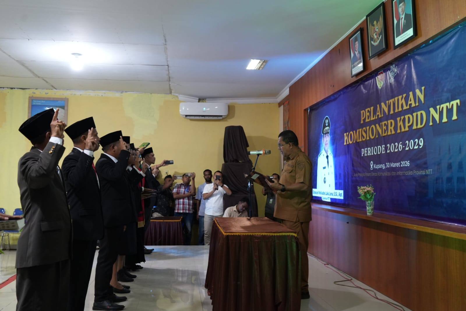 Kupang - Gubernur Nusa Tenggara Timur Emanuel Melkiades Laka Lena, melantik Anggota Komisi Penyiaran Indonesia Daerah (KPID) Provinsi NTT Masa Bakti 2026–2029 di Aula Palapa Kantor Dinas Komunikasi dan Informatika Provinsi NTT, Senin (30/3/2026) malam.