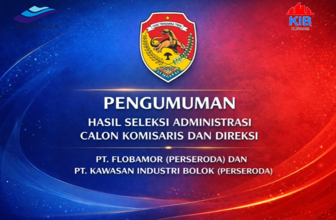 Berdasarkan hasil verifikasi dan validasi terhadap dokumen persyaratan yang telah disampaikan oleh para pelamar, dengan ini disampaikan bahwa panitia seleksi telah menyelesaikan proses seleksi administrasi untuk seleksi Dewan Komisaris dan Direksi PT. Flobamor (Perseroda) dan PT. Kawasan Industri Bolok (Perseroda).