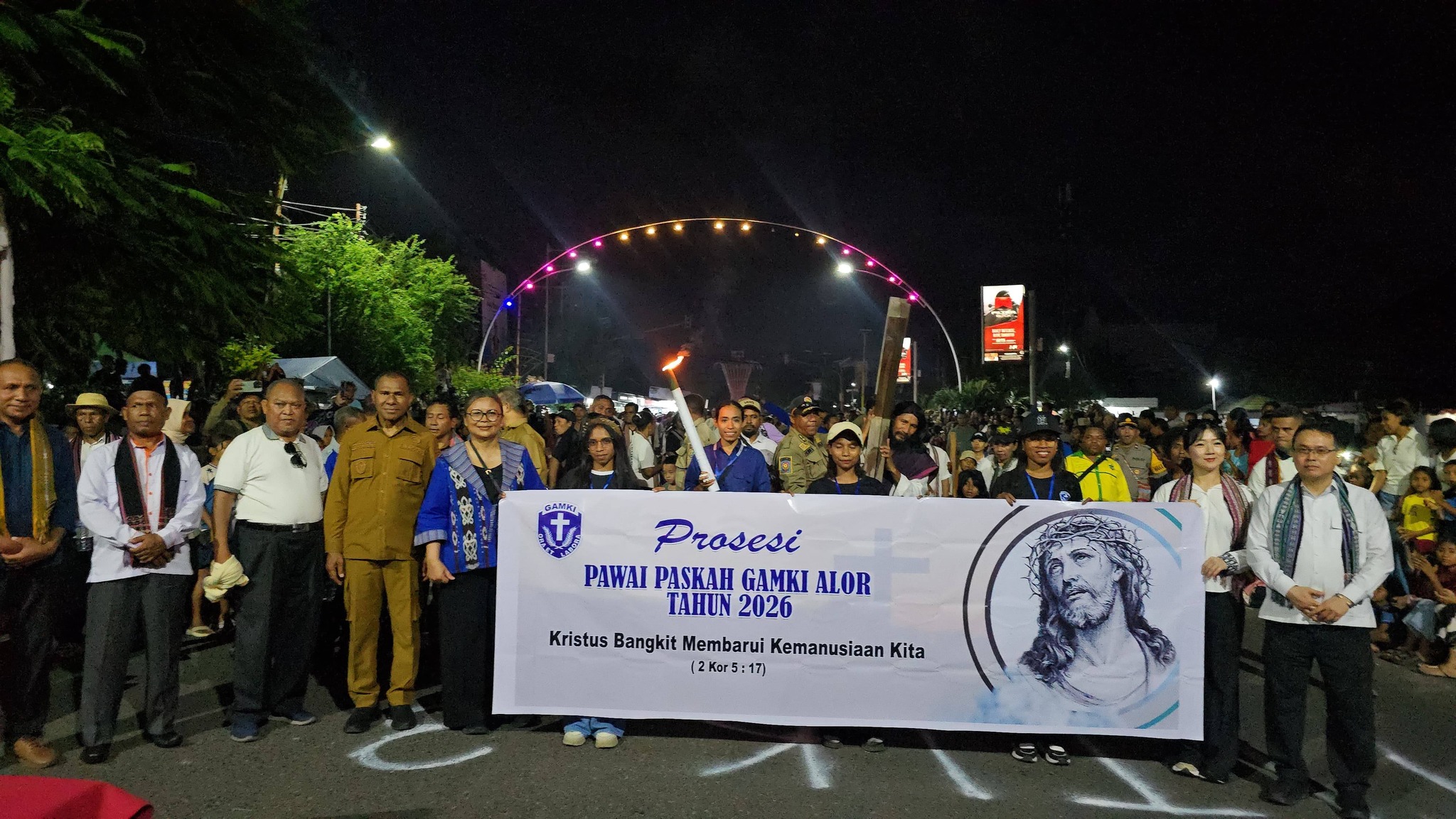 Kupang, 13 April 2026 - Wakil Gubernur Nusa Tenggara Timur Johni Asadoma, menghadiri sekaligus melepas kegiatan Pawai Paskah yang diselenggarakan oleh DPC GAMKI Kabupaten Alor Tahun 2026. Kegiatan yang dilaksanakan pada Senin (13/4) sore hingga malam ini berlangsung khidmat dan meriah, dengan diikuti sebanyak 27 peserta yang menampilkan berbagai fragmen sebagai bentuk penginjilan serta penyampaian pesan teologis kepada masyarakat.